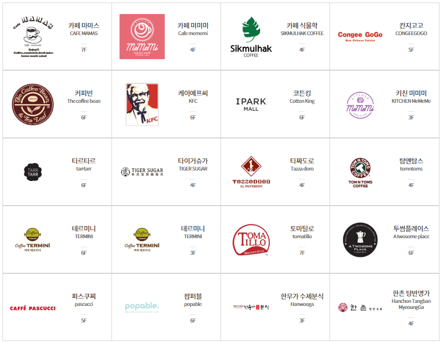 이번 글에서는 아이파크 몰에 있는 카페, 매장들을 한눈에 볼 수 있도록 정리해보았습니다. 아이파크몰에 있는 식당들은 주로 프랜차이즈 식당들이 많습니다.