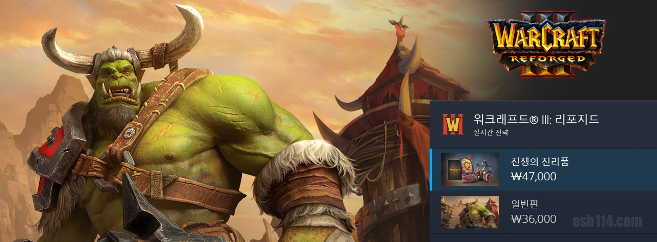 워크래프트3 리포지드의 가격은 전쟁의 전리품이 47,000원, 그리고 일반판이 36,000원 입니다. 일반판은 구매 시 워크래프트 리포지드의 전체 플레이를 즐길 수 있습니다. 전쟁의 전리품 판은 워크래프트 리포지드의 전체 컨텐츠와 하스스톤 3차 대전쟁 카드 뒷면, WOW의 시체 수레 탈것, 히오스의 영웅 제이나, 쓰랄, 아눕아락, 티란데 워3 영웅들, 디아블로3 애완동물, 스타크래프트2 콘솔 스킨, 스타크래프트 리마스터 콘솔 스킨을 제공합니다.