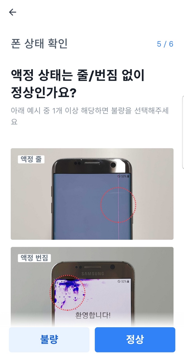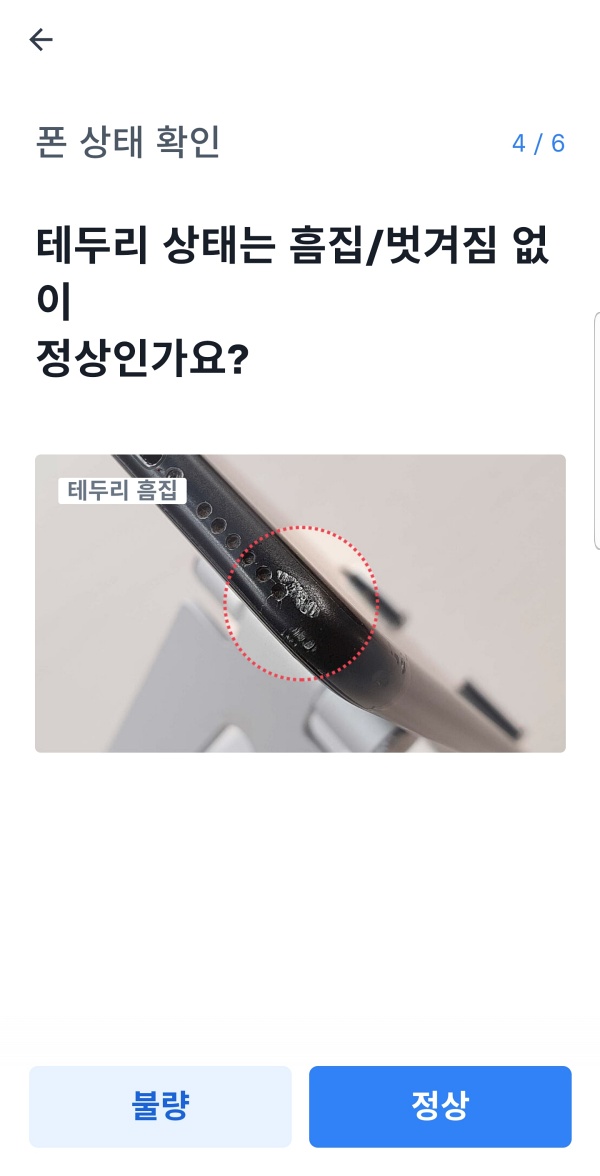 폰 상태 확인은 외관 상태를 셀프 체크합니다. 판매자가 스스로 보고 판단하는 거라서 크게 신경쓰기 않아도 됩니다. 불량을 체크하면 시세 가격이 바뀝니다.