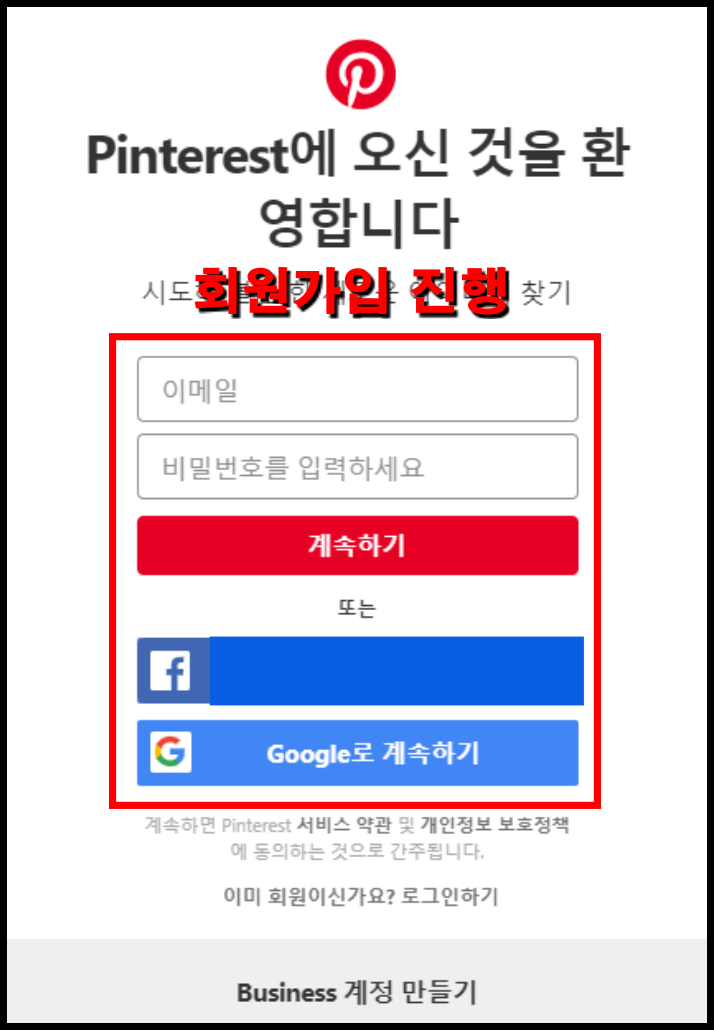 1. 핀터레스트에 가입합니다.
