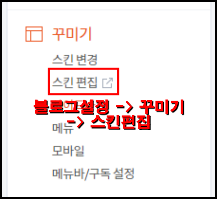 ▲ 티스토리 블로그 설정에 가서 스킨 편집으로 갑니다.