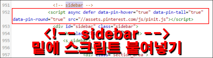 ▲ sidebar 밑에 아까 복사해둔 스크립트를 붙여넣습니다.