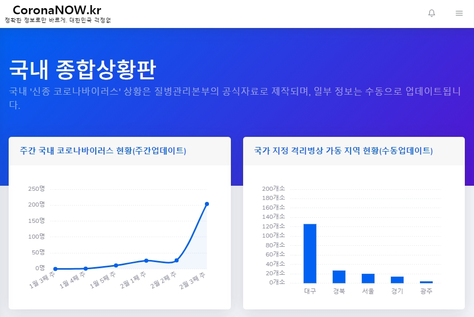 국내외 코로나 19현황을 종합해 알리는 코로나 나우 사이트가 화제입니다.