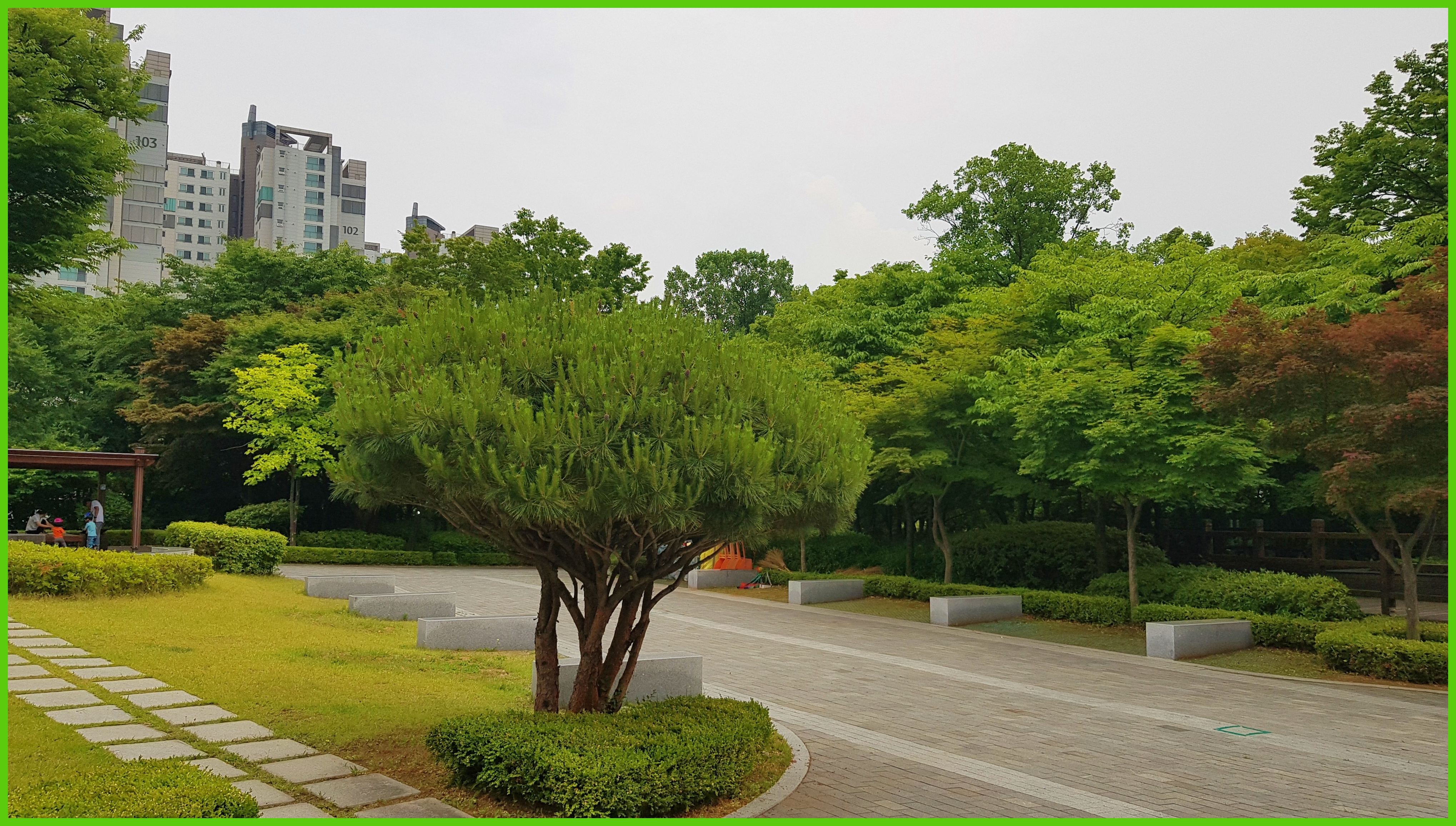 공원 내에 있는 태양광 구조물입니다. 대기질 상태를 알려주는 태양광 발전시설이라 합니다.
