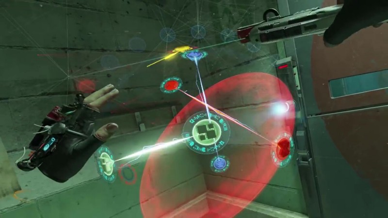 블링크는 다른 지점으로 텔레포트 하는 방식으로, 영상을 보면, 원한 지점을 선택하고 버튼을 누르면 지점으로 바로 텔레포트하는 걸 볼 수 있었습니다. 이 외에도, 원하는 지점까지 걸어가는 쉬프트, 눈이 바라보는 방항으로 걸어가는 컨티뉴어스, 손에 들고 있는 VR 패드로 이동하는 컨티뉴어스 핸드로도 이동할 수 있습니다.