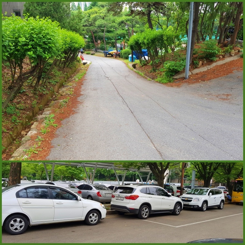 둘레길은 여러 갈래로 나뉘어 있습니다. 여기는 보라매병원 주차장과 연결돼 있네요.