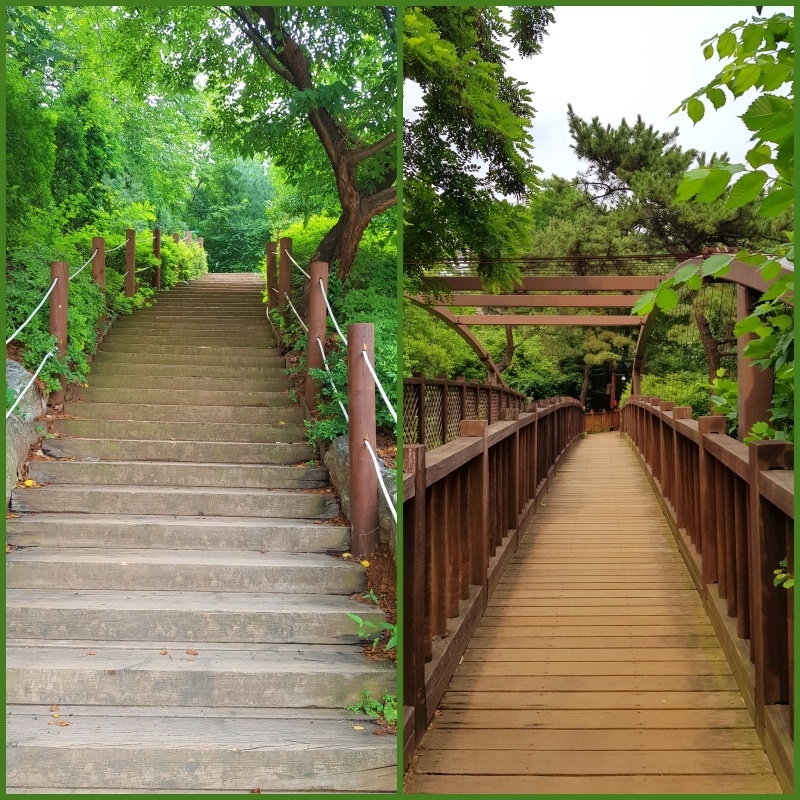 오른쪽으로 돌아 보라매병원쪽 길을 먼저 갔습니다. 흙길보단 이런 나무로 만든 길이 대부분이었습니다.