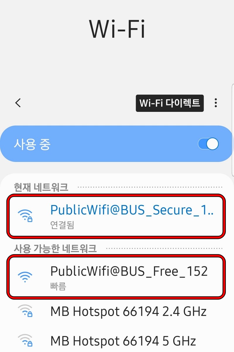 버스에서 와이파이를 켜면 2개의 네트워크가 잡힙니다.