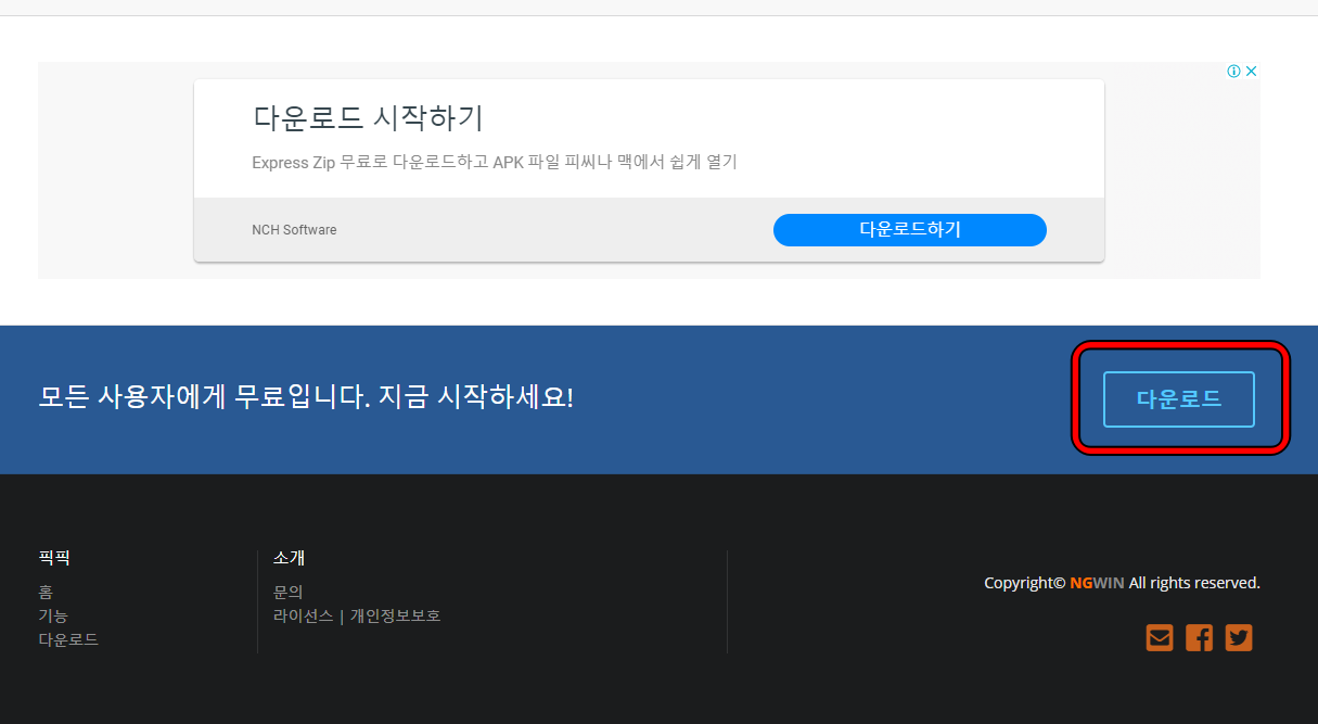 홈페이지에 접속하면 맨 아래에 다운로드 버튼이 있습니다. 클릭합니다.
