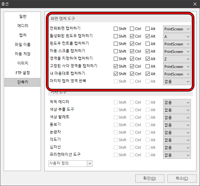 저는 픽픽을 이용할 때 단축키를 주로 이용합니다. 영역을 지정해서 캡쳐, 윈도 캡처 같은 기능들에 저만의 단축키를 정해놓고 이용하고 있죠. 이렇게 해 두면 캡처가 필요할 때마다 바로바로 캡처할 수 있어서 매우 편합니다.