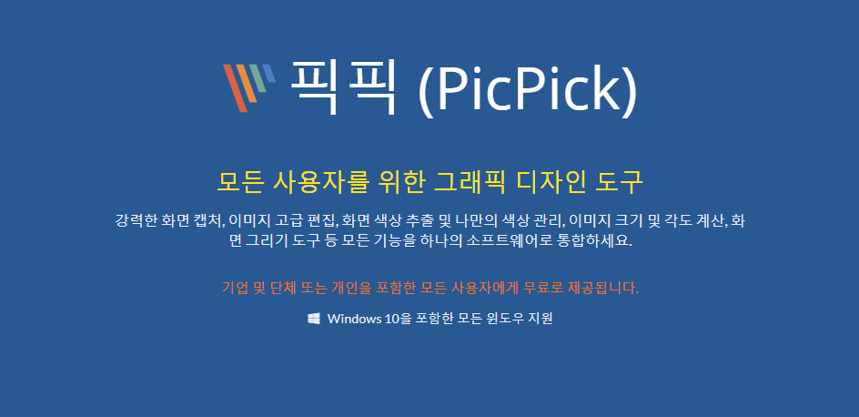 픽픽은 개인 및 기업까지 전부 무료로 사용할 수 있는 무료 소프트웨어입니다. 대신 프로그램에 대한 기술적인 지원은 받을 수 없습니다. 그런데 프로그램의 완성도가 높고 직관적이라서 몇 번 사용하면 금방 익숙해집니다.