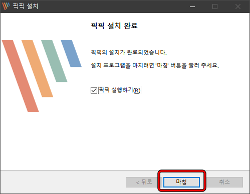설치가 끝나면 마침을 클릭합니다. 이제 픽픽을 사용하면 됩니다.