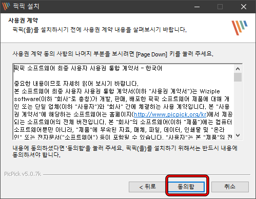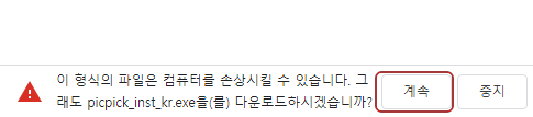픽픽 다운로드가 끝나면 픽픽을 설치합니다. 픽픽 설치 아이콘을 더블클릭합니다.
