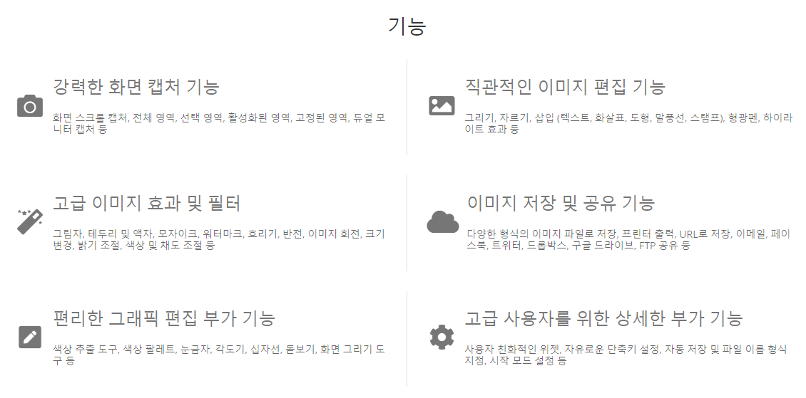 픽픽은 무료 프로그램인데도 다양한 기능을 지원합니다. 캡쳐는 기본이고 이미지 편집에 필터, 단축키 커스터마이징까지 가능하죠.