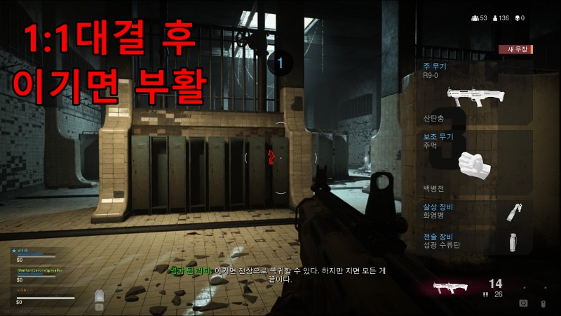 이건 마음에 들었습니다. 보통 죽으면 관전하거나, 게임을 나가는데, 이렇게 죽고 난 후에도 어떤 콘텐츠가 있다는 점이 좋았습니다. 굴라그에서 1:1을 하기 전에는 2층 대기실에 있는데, 여기서는 주먹질하고 싸울 수 있습니다. 죽지는 않더군요.