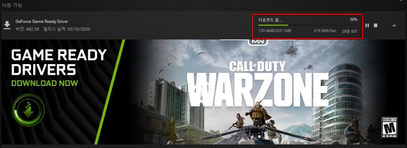 콜 오브 듀티 워존을 플레이하려면 드라이버를 업데이트해야 한다고 해서 다운로드하였습니다. 다운로드하는 사람들이 많아서인지 다운 속도가 안나오더군요.
