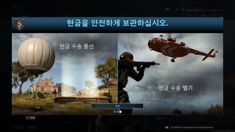 업데이트를 끝내고 게임을 실행하니 워존 메뉴가 활성화된걸 볼 수 있었습니다. 바로 플레이해봤습니다.