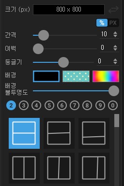 콜라주는 여러 사진을 조합할 때 사용합니다. 최대 10개까지의 이미지 콜라주가 가능하고, 기본으로 제공하는 레이아웃도 아주 좋아서 포토북을 만들 때 애용하고 있습니다.