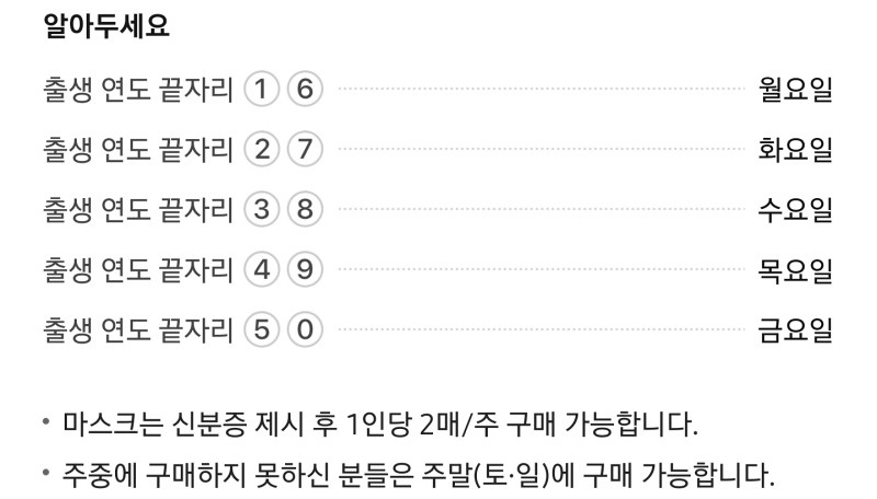 공적마스크 판매처에서 판매하는 마스크는 그냥 구매할 수 있는 건 아니고, 마스크 5부제 규정에 따라 판매하고 있습니다.