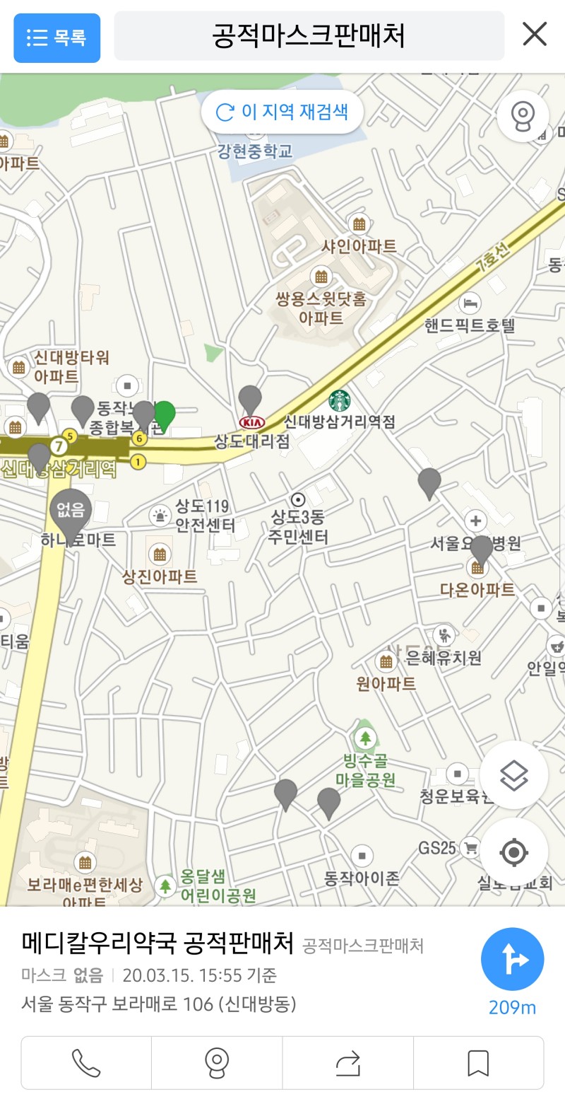 카카오 맵 공적 마스크 확인