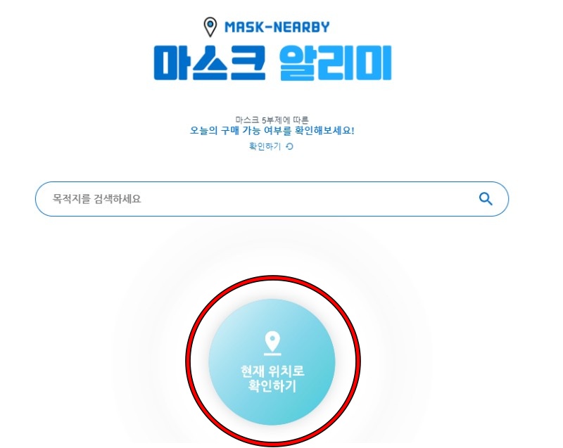 사이트에서 현재 위치로 확인하기를 클릭하면 내 주변 마스크 재고를 확인할 수 있습니다.