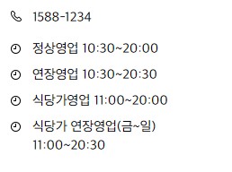 식당가 연장영업(금~일): 11:00~20:30(오후 8시)