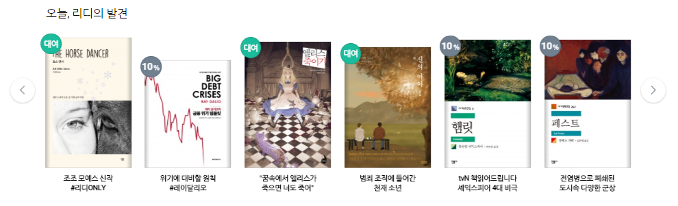 리디북스는 구독 시스템이 있습니다. 재작년에 나온 건데, 리디 셀렉트라고 부르는 것입니다. 월 일정 금액을 내면 리디북스에서 선정한 책들을 추가 결제 없이 읽을 수 있는 시스템이죠. 넷플릭스와 비슷한 시스템이라고 보시면 됩니다. 저번에 봤을 때 3,000권을 제공했는데, 지금은 조금 더 늘어났을 겁니다. 나름 엄선된 책들을 제공하기 때문에, 관심 가질만한 책들이 많습니다.