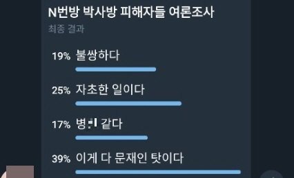 일부 남초 커뮤니티에서는 피해자들에 대한 2차 가해를 하거나 '''링크를 요구하는 등 비정상적인 반응을 나타내고, 사건을 알리거나 지지하는 유명인들에게 사상검증을 요구하는 등 여성혐오를 표출하는 사람들이 늘어났습니다. 이와 반대로 일부 여초 커뮤니티에서 이 사건이 남성혐오로 쓰이고 자신들끼리 왜곡된 정보를 주고받는 사람들도 늘어났습니다.