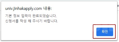 이용약관, 개인정보 수집 및 이용에 관한 동의, 개인정보 처리 위탁 동의에 전부 동의하면 신청서 작성을 할 수 있습니다. 확인을 눌러 다음으로 이동합니다.