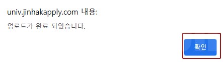 개인정보 제공 동의서 업로드 항목입니다. 앞서 설명드린 개인정보 제공 동의서 파일을 업로드하시면 됩니다. 업로드할 수 있는 파일 종류는 JPG, GIF, BMP, PNG입니다. PDF 파일 형식은 업로드가 불가능합니다. 업로드를 하면 완료되었다는 팝업창이 뜹니다. 확인을 눌러줍니다.