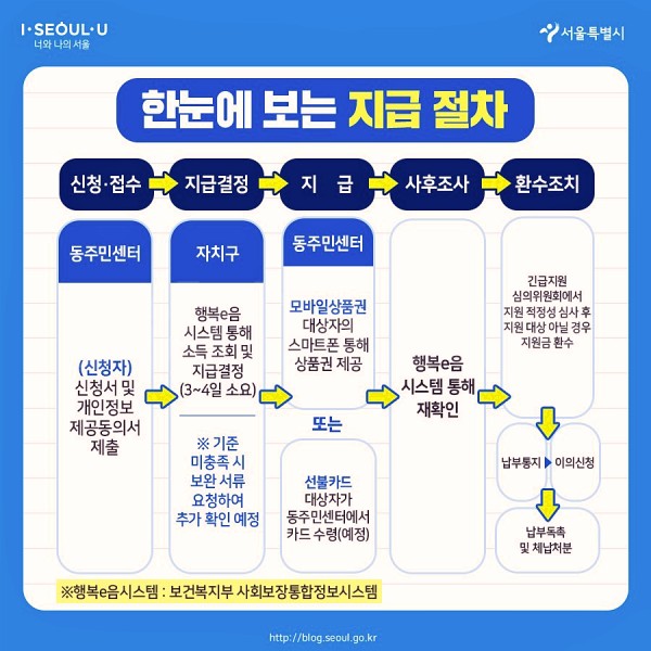 서울시 재난 긴급 생활비 지원 신청은 다음과 같은 순서로 진행됩니다.
