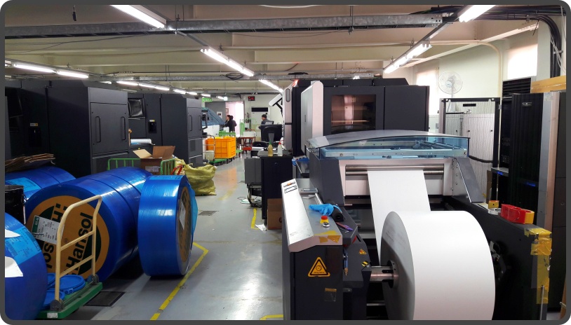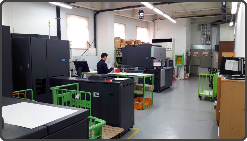 장비는 HP indigo를 사용합니다. 7000 시리즈, 10000 시리즈, 그리고 디지털 윤전기도 볼 수 있었습니다.