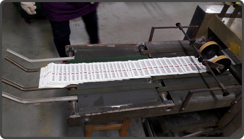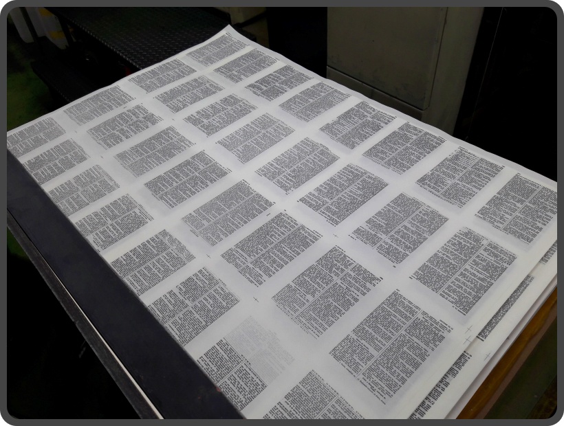 ▲ 출력된 종이를 접고 그 종이들을 사철제본(실로 제본하는 방식)하면, 책의 내지가 만들어집니다.