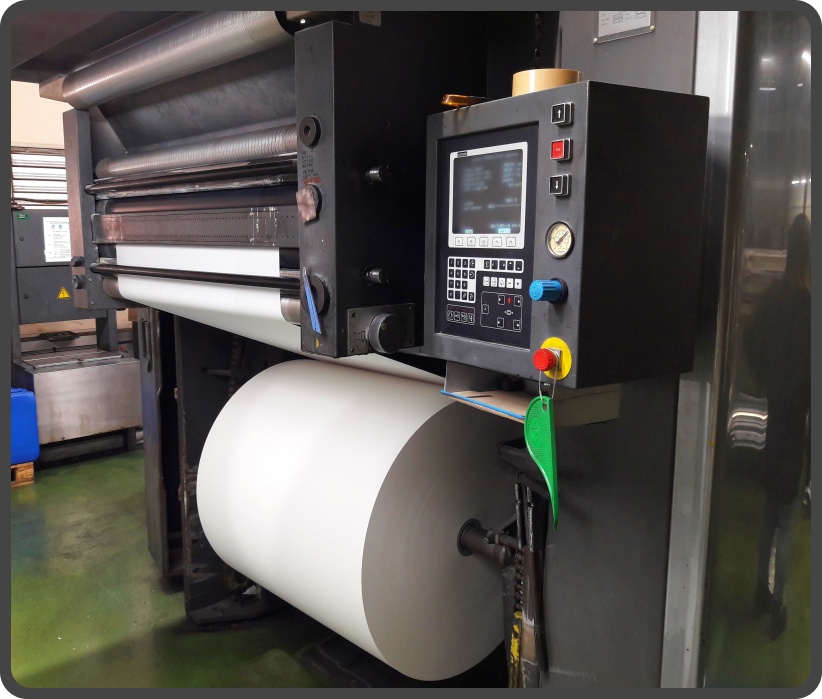 ▲ 종이 롤을 윤전기에 끼워 인쇄를 합니다.