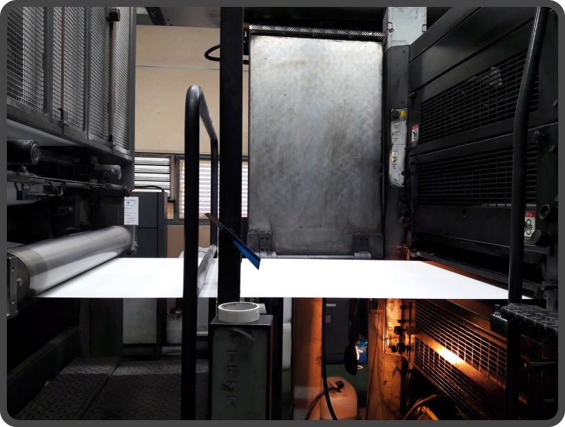 ▲ 사진에 보이는 기계는 HP Indigo(이하 인디고라 부르겠습니다)라고 부르며 디지털 인쇄를 하는 장치입니다. 큰 종이를 인쇄하는 프린터라 생각하시면 됩니다. 인쇄 과정이 간편하고, 디지털 인쇄 중에선 품질이 좋아 많이 쓰고 있습니다.