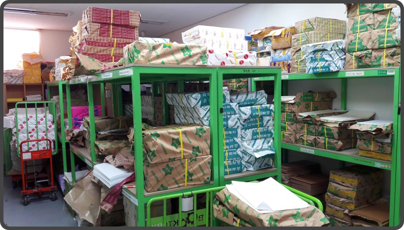 ▲ 창고입니다. 실제론 저 사진의 수십배의 종이가 있죠. 다 쓰는 데 며칠 안 걸린다고 합니다.