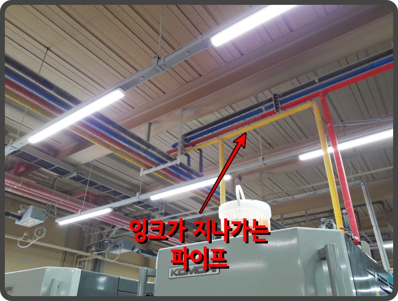 ▲ 잉크가 지나가는 파이프입니다. 윤전기는 저 파이프를 통해 잉크를 공급받죠.