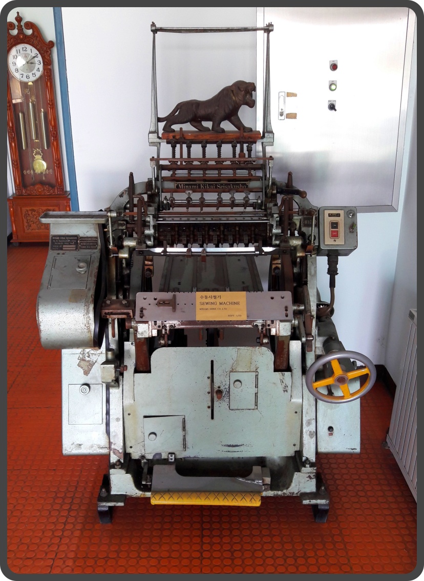 ▲ 사철제본기입니다. 책 등 부분을 실로 엮어 줍니다.