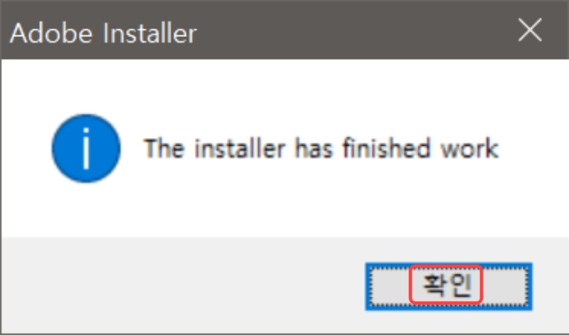 설치 중입니다. 설치하는 시간은 컴퓨터 사양에 따라 다릅니다. 저는 3~5분 정도 걸린 것 같습니다. 설치가 끝나면 The installer has finished work라는 창이 나올 겁니다. 확인 을 클릭하면 일러스트 2021 설치는 끝나게 됩니다.