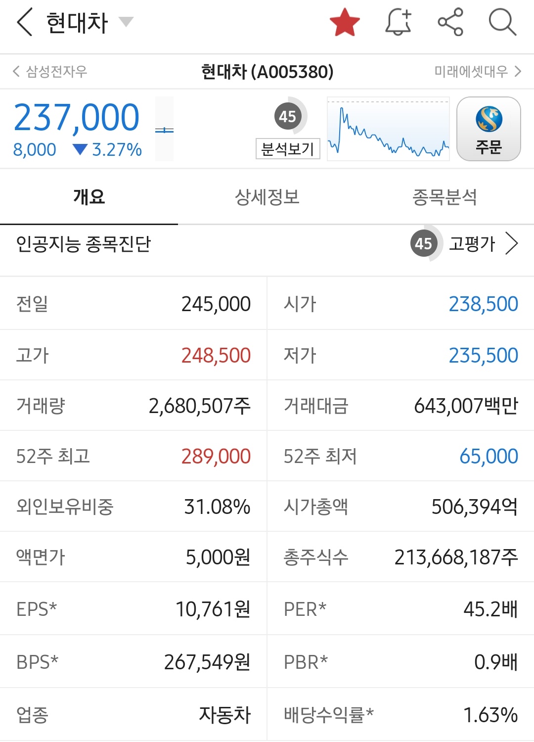 저는 현대차를 사보기로 했습니다. 관련 뉴스를 보니, 현대차가 우리나라에서 전기차 시장에서 가능성이 있어 보이고, 관련 뉴스도 꽤 괜찮았기 때문입니다. 장기적으로 보유하면 좋을 결과가 있을 거 같아서 현대차 주식을 소량 구매하기로 했습니다.