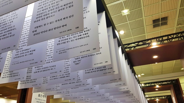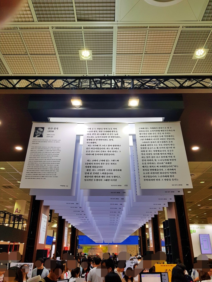이렇게 부스 천장을 고전문학 책 페이지로 장식했습니다. 저도 그랬지만, 부스를 예쁘게 꾸며놓아서 사진 찍는 사람들이 많았습니다.