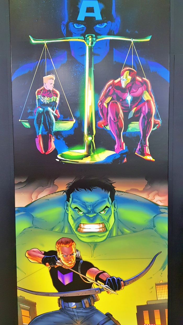 마블 만화책을 여기서 출판하거든요. 전시장에는 마블 만화책과 관련 굿즈가 있었습니다.