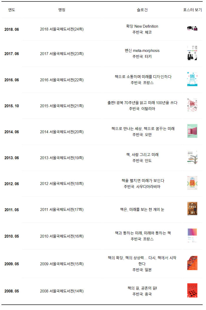 2008년부터 서울국제도서전이라는 이름으로 매년 5~6월에 열리고 있는 도서 관련 문화행사입니다. 2019년 서울국제도서전은 25번째 행사이고 주빈국은 헝가리입니다.