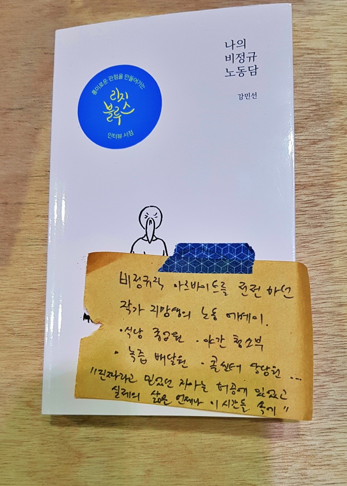 책마다 이렇게 책에 대한 간단한 설명을 포스트잇으로 붙여 놓았습니다. 좋은 아이디어 같았습니다.