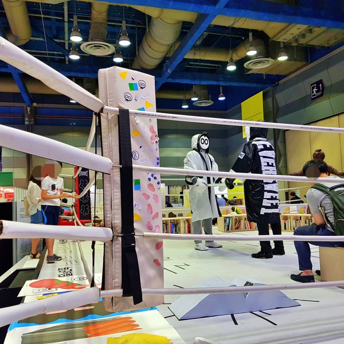 요리인류 부스 옆에는 배달의 민족이 만든 전시물도 있었습니다. 링 위에서 결투를 하는 배민 캐릭터입니다.