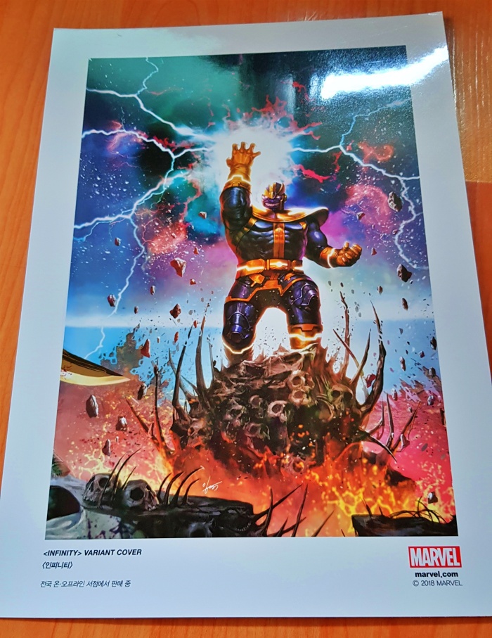 타노스 포스터가 2장 들어있습니다. 사이즈는 A3입니다. 유광코팅이 되어있어 색감이 살아있네요.