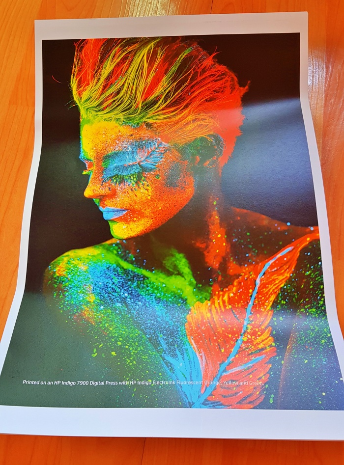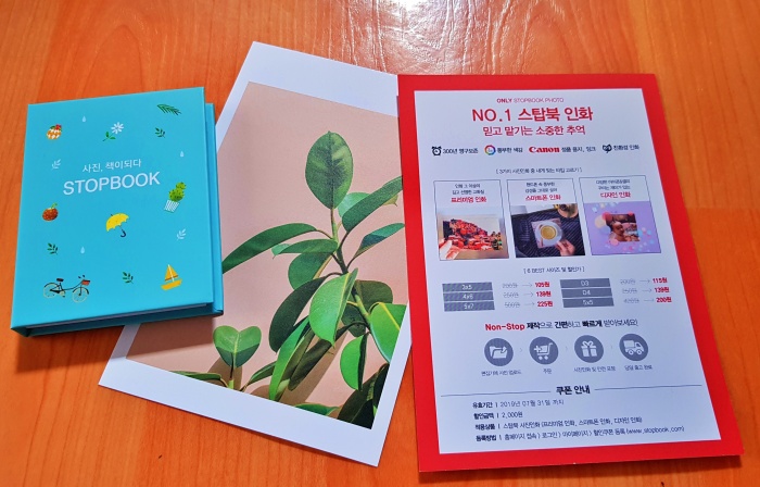 미니 무지노트, 달력엽서, 그리고 포토북 2000원 할인쿠폰입니다. 오른쪽에 있는 포스터는 인디고 7900에서 출력한 인쇄물입니다. 하단에는 오렌지, 노랑, 녹색의 형광잉크를 썼다고 적혀 있습니다.