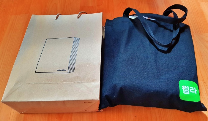 에코백과 종이가방에 가득 채워 왔습니다.(에코백도 굿즈입니다.)