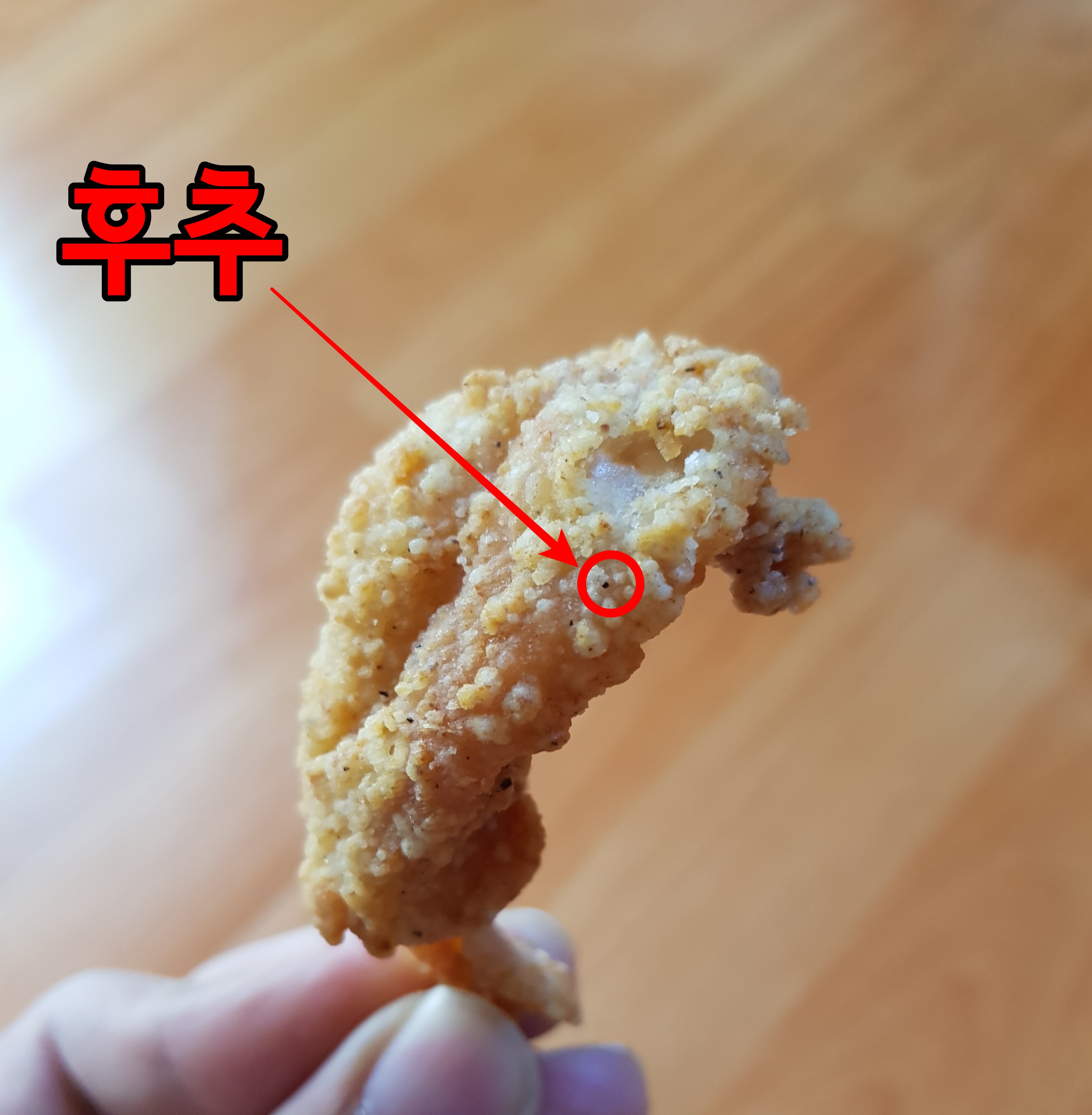 맛은 이름 그대로 닭껍질 맛입니다. 예전 오리지널 KFC에는 후추 맛이 강했는데, 그 느낌이었어요. 짜고 후추향이 강하고 기름집니다. 느끼해서 많이 먹기 힘듭니다. 하지만 먹으면서 술 생각이 나는 걸 보니, 맥주 안주로는 괜찮을 것 같습니다.
