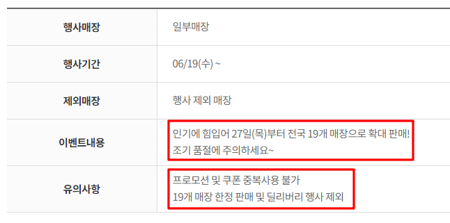 6월 27일(목)부터 19개 매장으로 확대 판매합니다. 딜리버리는 안되고 현장판매만 되는 점 참고 바랍니다.
